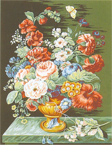 arazzo stampato per mezzopunto (piccolo punto). Tela Penelope Antica, dimensioni del disegno: 80x130 cm, dimensioni della tela: 100x150 cm.